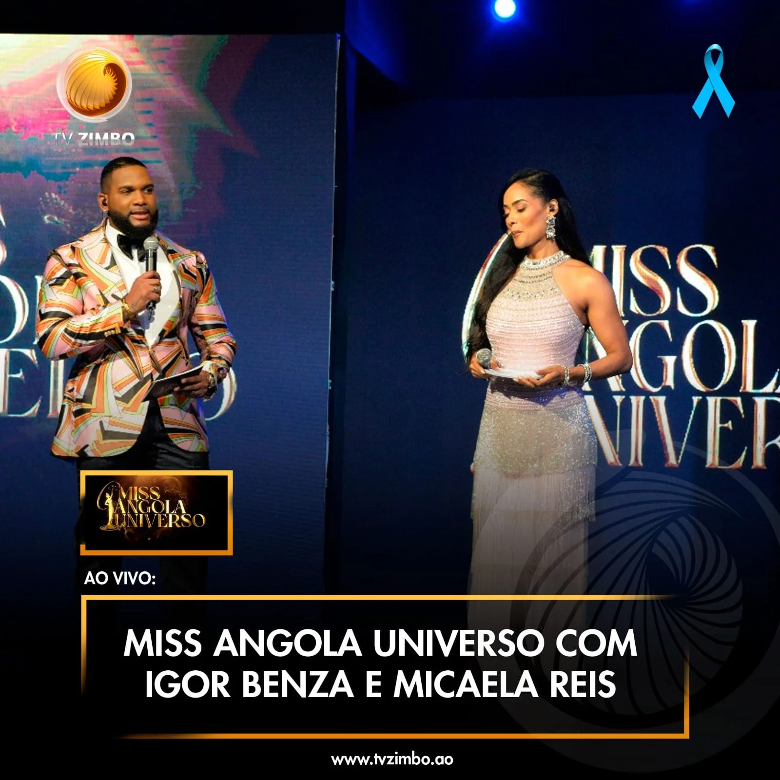 A TV ZIMBO é a Televisão oficial do concurso Miss Angola Universo que decorre neste momento em Luanda, no Clube S. Evento que tem como apresentadores o nosso simpático Igor Benza e a carismática Micaela Reis.