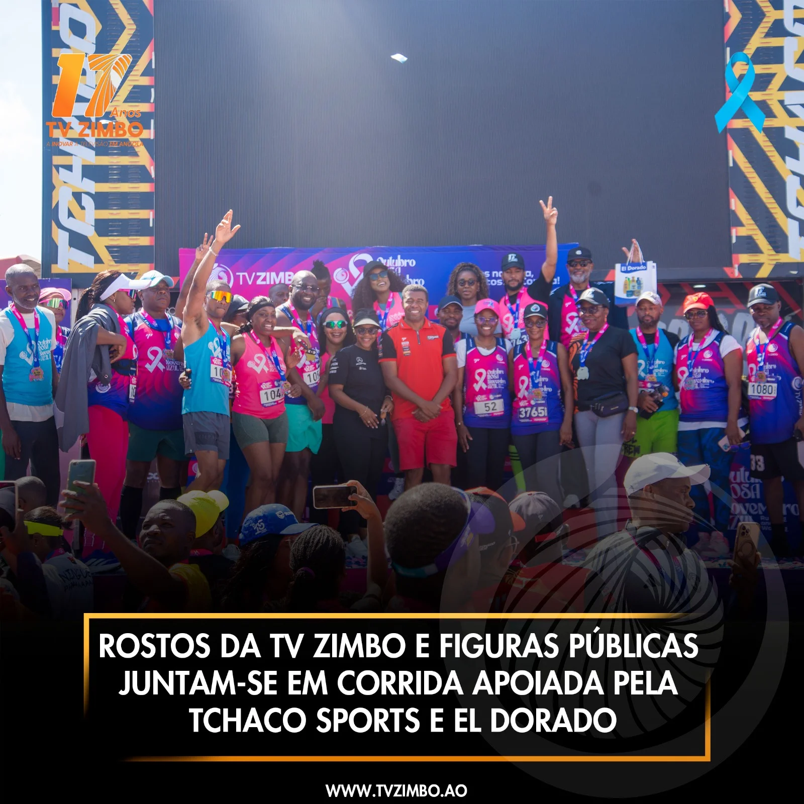 A corrida e caminhada Solidária da TV ZIMBO contou, este domingo, 16 de novembro, com a presença de rostos conhecidos da estação e de figuras públicas, num evento que ganhou maior expressão graças ao patrocínio da Tchaco Sports e a El Dorado. A iniciativa, dedicada ao Outubro Rosa e Novembro Azul, decorreu num ambiente de grande adesão e visibilidade social.