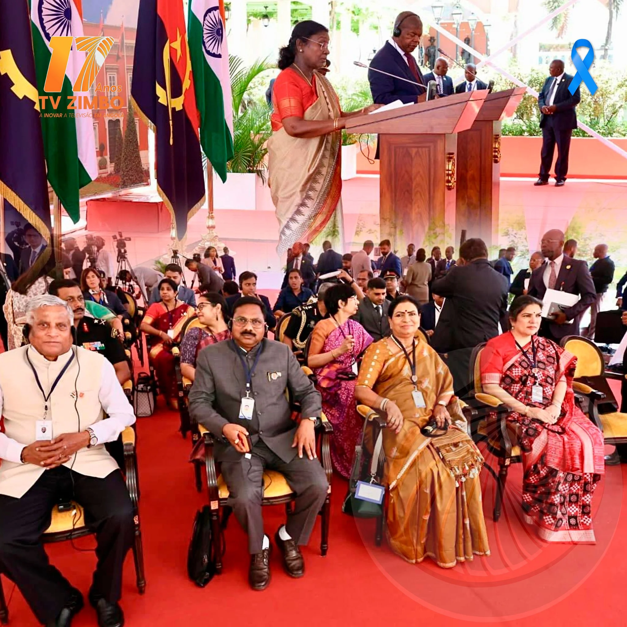 O Presidente João Lourenço, de Angola, e Droupadi Murmu, da Índia, prestaram declarações à imprensa no Jardim do Palácio Presidencial, em Angola, após assistirem, na Sala de Tratados, à assinatura de cinco instrumentos jurídicos de cooperação entre os dois países.
