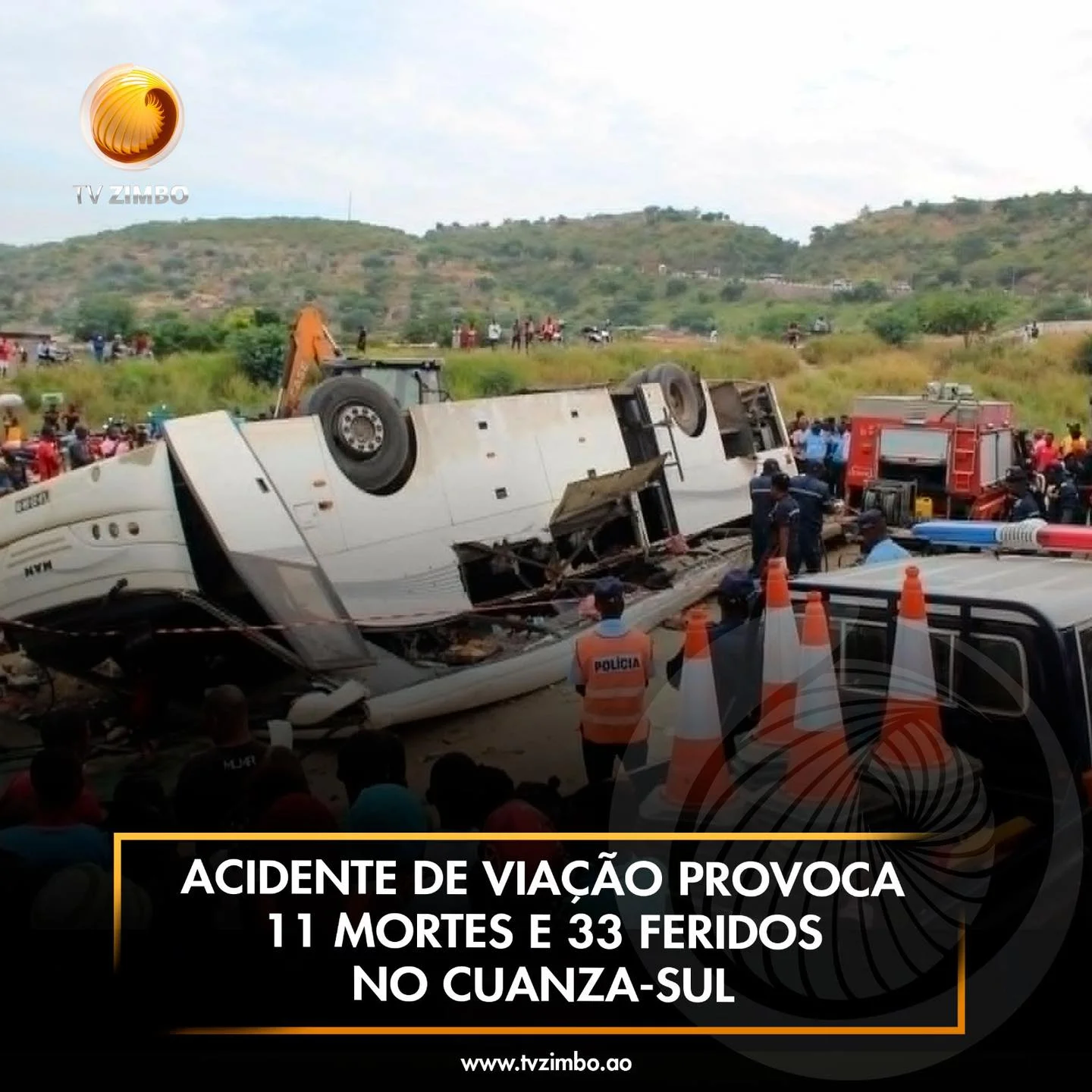 Um acidente de viação ocorrido na madrugada desta quarta-feira, 29 de janeiro, no Morro do Chingo, município do Sumbe, província do Cuanza-Sul, causou a morte de 11 pessoas e deixou 33 feridos. O acidente envolveu o despiste e capotamento de um autocarro de transporte de passageiros, que fazia a rota Luanda-Huíla, e os feridos, incluindo oito em estado grave, estão a receber tratamento no hospital local.